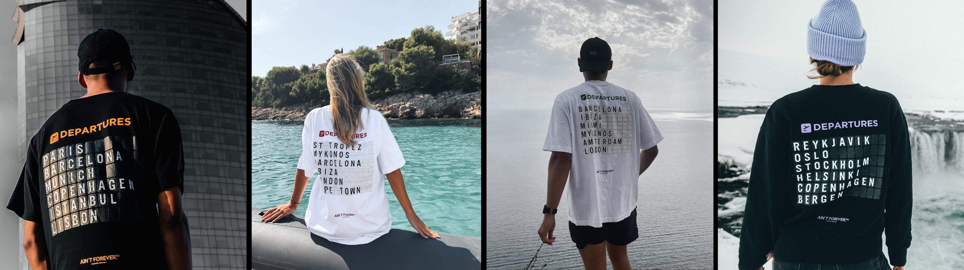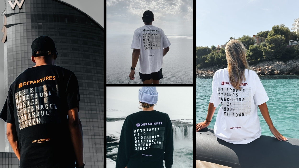 AIN'T FOREVER.™ believes life is a collection of moments worth savouring. Our adventure-inspired designs, from customisable boarding pass prints to special collaborations with our favourite artists, encourage you to explore, dream & discover. Let our clothing be a companion on your journey to living life to the fullest.