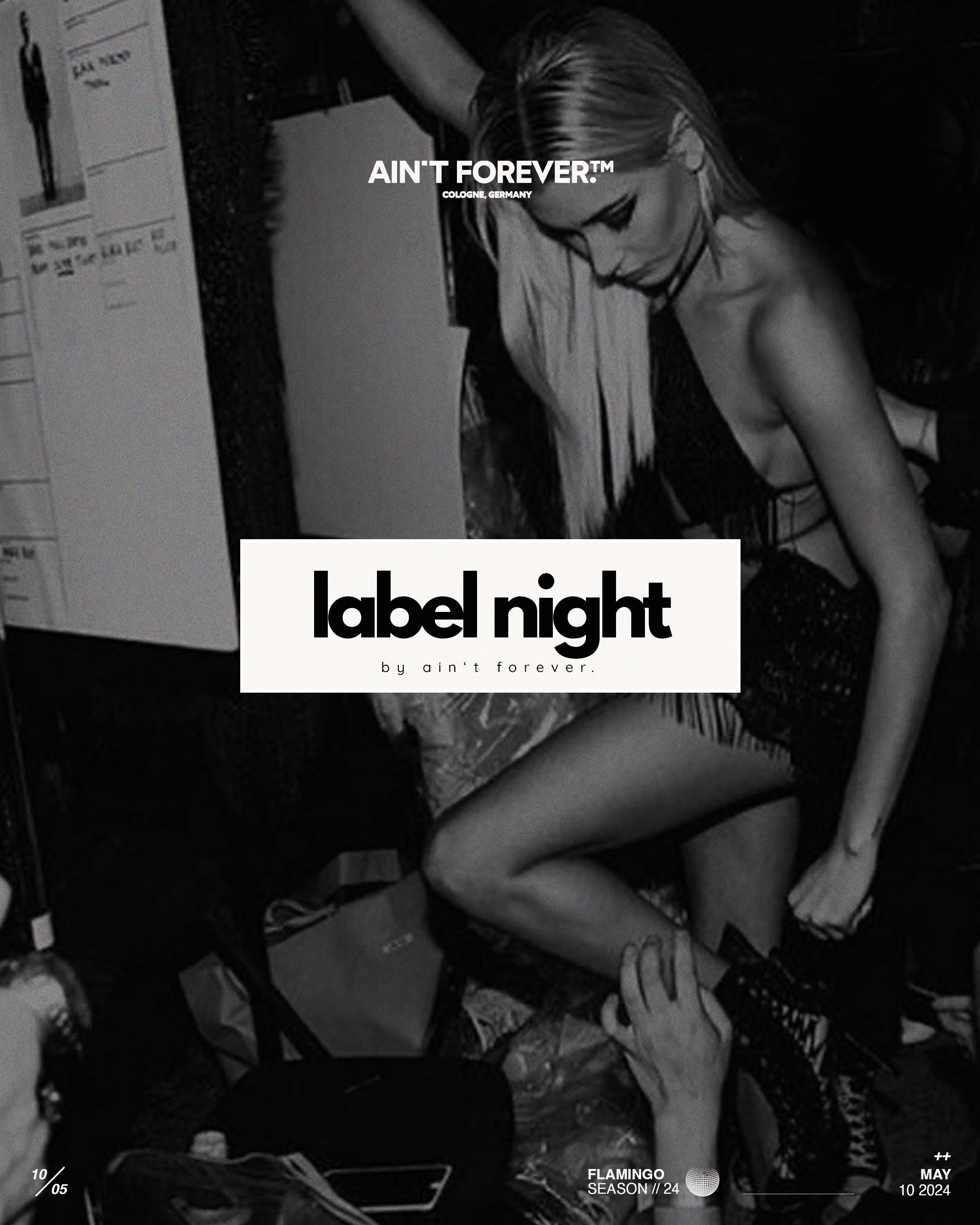 Our very first Label Night at Flamingo Royal in Cologne was a night to remember. More than just a party, it was a celebration of years of hard work, creativity, and the incredible support from our community. Seeing AIN'T FOREVER.™ come to life in this way was something special. Over time, we've built not just a brand, but a movement—one that stands for style, quality, and a loyal following that continues to grow. Hosting our first event at Flamingo Royal was the perfect match. With its chic atmosphere and vibrant energy, the venue set the stage for an unforgettable night, marking the beginning of an exciting new chapter for us.