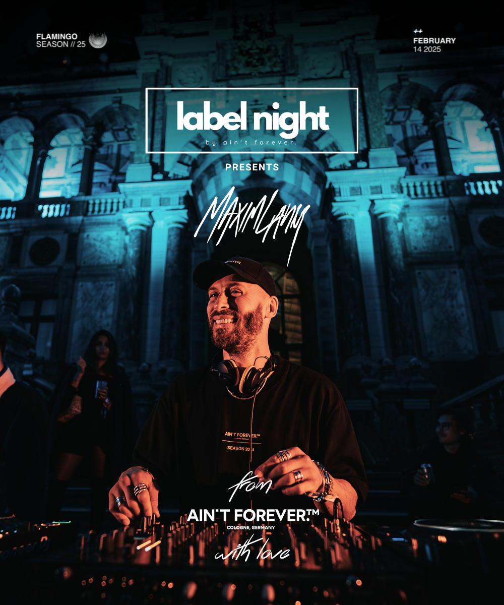 On Valentine’s Day, we celebrated our third Label Night at Flamingo Royal in Cologne, and it was nothing short of incredible. The club was packed from the start, the energy was next level, and the crowd brought the perfect vibe to make this night unforgettable. A highlight of the night was Maxim Lany’s first-ever set for AIN'T FOREVER.™. After dropping our "The Season 2024 Collection" together in October, having him behind the decks in Cologne was something special. His sound took the night to another level, and the atmosphere in the club proved once again why these nights are so unique.