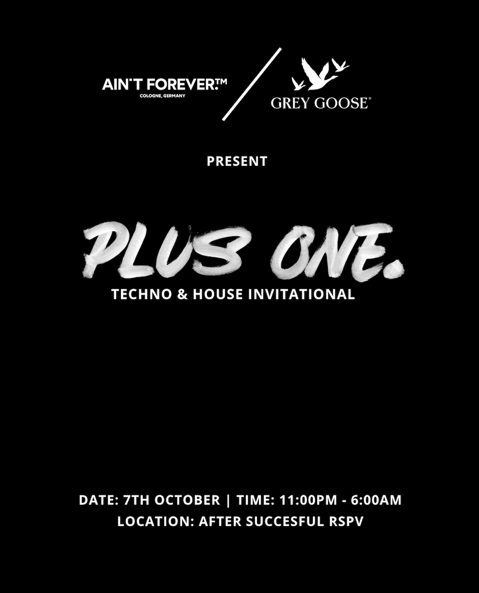 AIN‘T FOREVER.™ x GREY GOOSE PRESENTS PLUS ONE. TECHNO & HOUSE INVITATIONAL